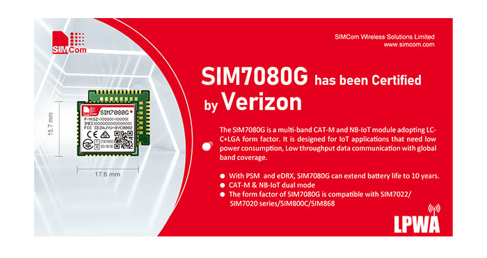 SIMCom LPWA module SIM7080G has been certified by Verizon