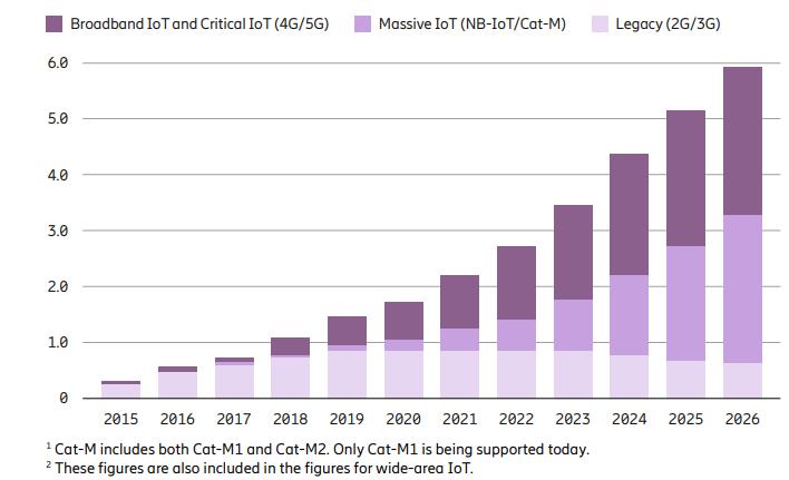 Cat. M and NB- IoT are the two popular technologies of LPWA solutions,which are expected to become the fastest-growing in the future. According to the prediction of Ericsson analysis , the shipment volume of cellular IoT modules by NB-IoT and Cat.M will reach 251 million in 2026.