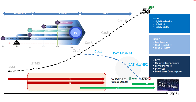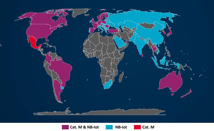The function of NB-IoT is similar to that of Cat.M. In terms of applicability, either Cat. M or NB-IoT has absolute advantage so that many telecom operators adopt two standards in the same time to support future IoT devices and applications. According to the GSMA data, more than 140 telecom operators around the world have actively deployed or launched Cat.M/NB-IoT network in 64 countries/regions.