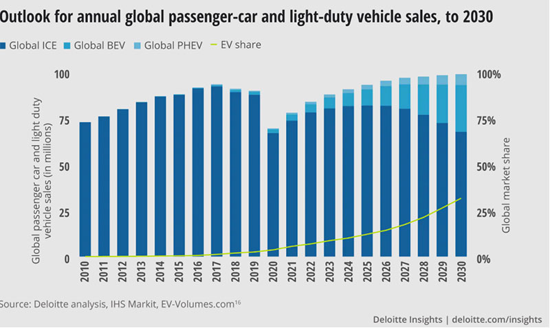 Recently, electric vehicles (EVs) have been introduced as an alternative method of transportation to help mitigate environmental issues, such as carbon emissions and fuel consumption, caused by conventional transportation systems. According to Clean Technica, global sales of EVs (passenger vehicles) jumped 108% in 2021, reaching nearly 6.5 million units, which is the highest growth rate since 2012. Deloitte forecasts there will be a compound annual growth rate of 29 per cent for EV, total sales reaching 31.1 million by 2030 as a result of a slowdown in ICE sales. To date, more than 20 countries have announced the full phase-out of internal combustion engine (ICE) car sales over the next 1030 years. Undoubtedly, the world transport has switched tracks entering an era of EVs.