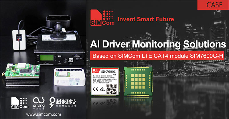 An AI driver monitoring solution developed by SIMCom in collaboration with AI Driving and SHOWMAC is a new-generation intelligent device integrating active safety, drowsy driving monitoring and 4G video. It supports 8 intelligent HD cameras. With the built-in SIMCom 4G module SIM7600G-H, the device offers image capture at any time to ensure that the driver's facial features and body images are captured in all kinds of environments around the clock, and realize real-time all-round monitoring and tracking of the driver and passenger's condition, road condition, vehicle condition, vehicle load and cargo condition, so as to ensure driving safety to the greatest extent.