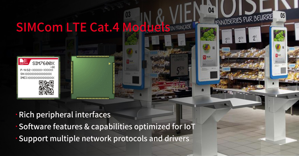 The digitized payment is the crucial step no retail business model can bypass. Otherwise , the smart retail will be up in the air . SIM7600X-H series, one of the most successful SIMCom 4G modules in its more than two decades history of wireless techs development, can bring powerful digital capability to payment. The SIM7600X-H series is the LTE Cat. 4 module which supports LTE, UMTS and GSM networks, with maximum 150 Mbps downlink rate and 50 Mbps uplink rate. It helps payment terminals connect with network as long as they are within the coverage of the cellular network. In addition, the speedy transmission rate of SIM7600X-H series can raise the payment efficiency to avoid long-time queuing which might influence the shopping experience of consumers. Beyond that, the SIM7600X-H series has acquired most of the regulatory and telecom carriers’ certifications across the globe, which means that payment terminals that adopt regional variants of the SIM7600X-H series can easily enter major markets around the world.