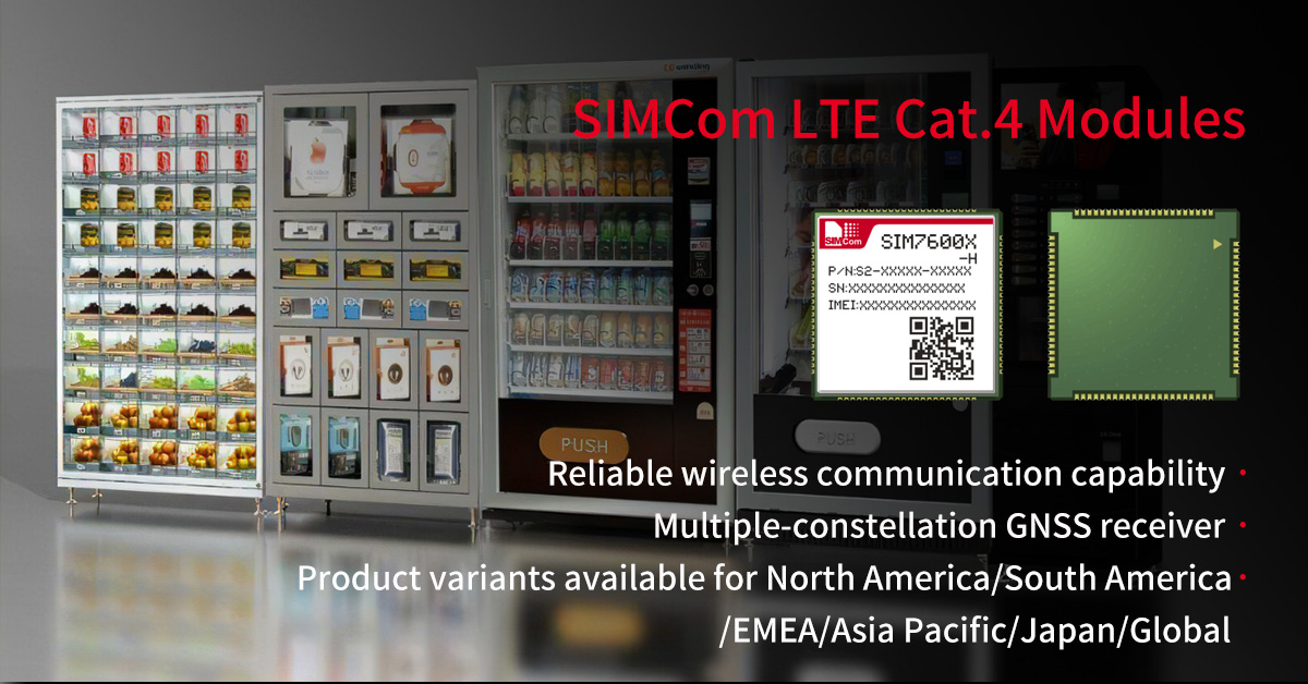 The SIM7600X-H series integrates multiple-constellation GNSS receiver with high accuracy of positioning. Based on that, the vending machines, another flexible form of retail, can be widely deployed as it will be much more easily for replenishment, maintenance by the operation staff and also for consumers to locate. As a result, by making full use of the wireless communication capability of the SIM7600X-H series, vending machines break through the limitations of space and provide more accessible retail services for more people