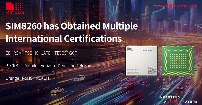 SIMCom, a global leader in IoT communication and solutions, proudly announces that its SIM8260 Series 5G modules have successfully obtained a wide range of international certifications, including CE, RCM, FCC, IC, JATE, TELEC, GCF, PTCRB, T-Mobile, Verizon, Deutsche Telekom, Orange, RoHS, REACH. These certifications demonstrate the SIM8230 series’ compliance with global standards and network requirements, ensuring smooth deployment across worldwide markets.